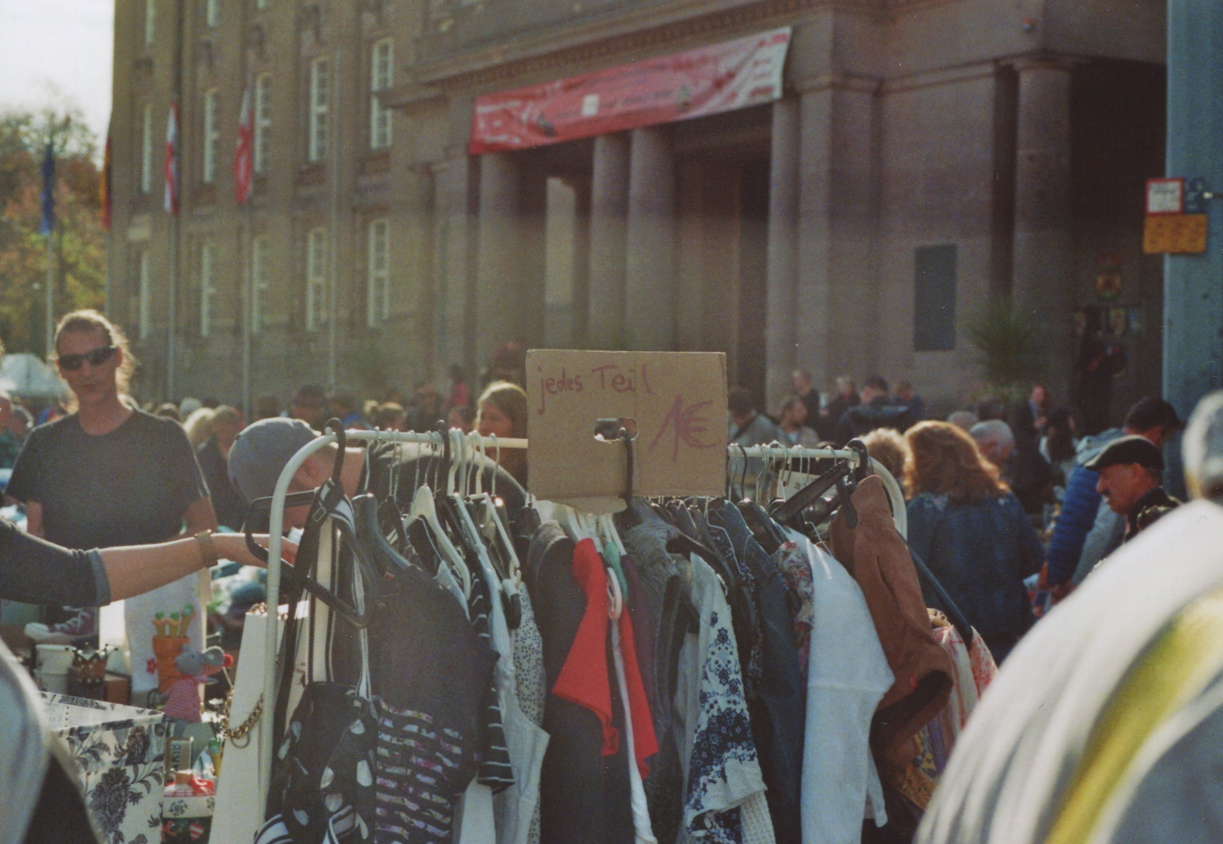 Der Flohmarkt am Rathaus Schöneberg ist ein ganz besonderer: weit fernab von jeder Touriattraktion gibt es hier wenig bis keine überteuerten Hipsterprodukte zu erstehen, sondern viele wahre Schätze zu ergattern. Es ist indes ein geschichtsträchtiger Ort, der Platz vor dem Rathaus. Auf dem John F. Kennedy-Platz hat nämlich kein geringerer als eben John F. Kennedy seinen berühmten “Ich bin ein Berliner”-Slogan in die Menge gerufen, um die Menschen an den freiheitlichen Geist ihrer Stadt zu erinnern. Am frühherbstlichen Sonntag geht es dann doch eher ums Flanieren, Feilschen und Palavern.